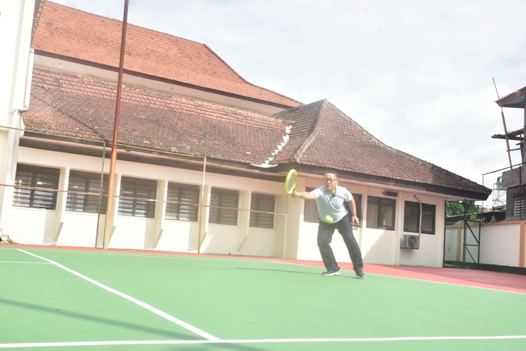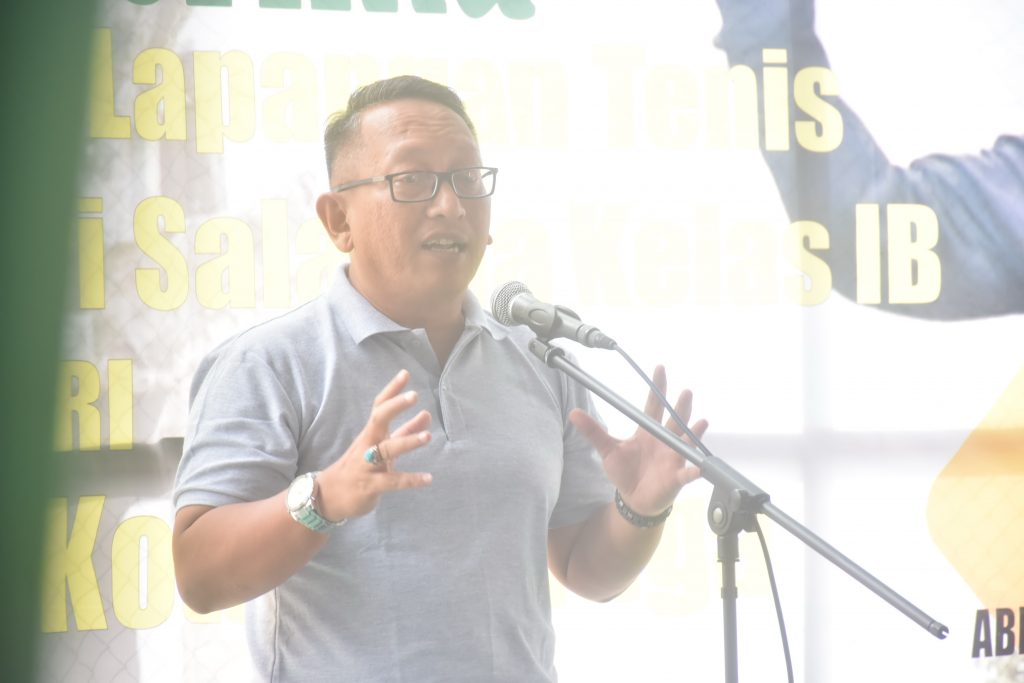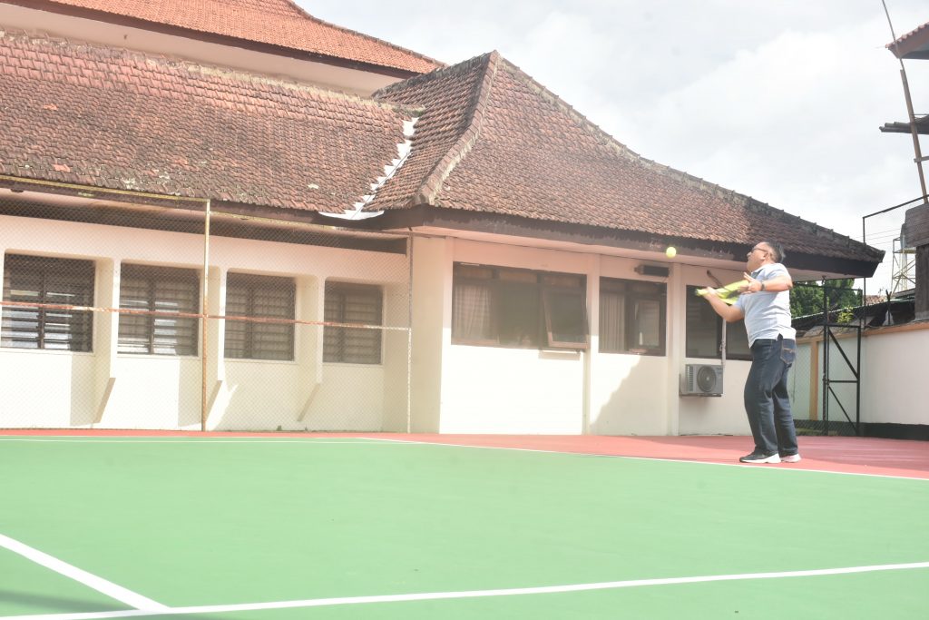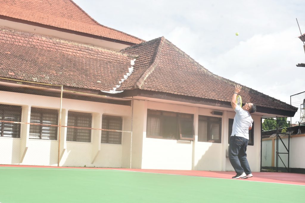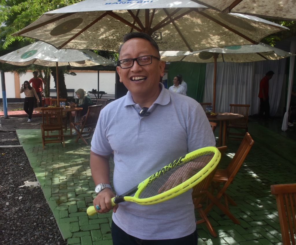 Salatiga – Penjabat(Pj) Wali Kota Salatiga, Sinoeng N Rachmadi mencoba bermain Tenis Lapangan di Lapangan Tenis baru dari Pengadilan Negeri Salatiga. Diakuinya, bahwa lapangan yang baru di renovasi tersebut sangat nyaman digunakan untuk bermain tenis.